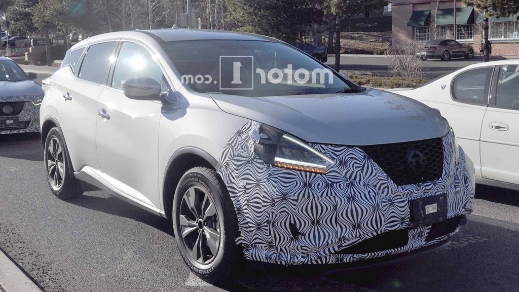 New spy shots are showing that Nissan is preparing refreshments for the Murano model. The already handsome crossover SUV will now look even more attractive. The new-look is much sharper, especially the front end. Revised headlights and LED running lights are looking brilliant. The pair of running lights are arrow-shaped and it looks like they are pointing at the center of the grille. A very nice piece of styling from Japanese carmaker.